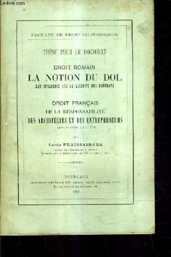DROIT ROMAIN LA NOTION DU DOL SON INFLUENCE SUR LA VALIDITE DES CONTRATS - DROIT FRANCAIS DE LA RESPONSABILITE DES ARCHITECTES ET DES ENTREPRENEURS D'APRES LES ARTCILES 1792 ET 2270 - THESE POUR LE DOCTORAT FACULTE DE DROIT DE BORDEAUX. Description